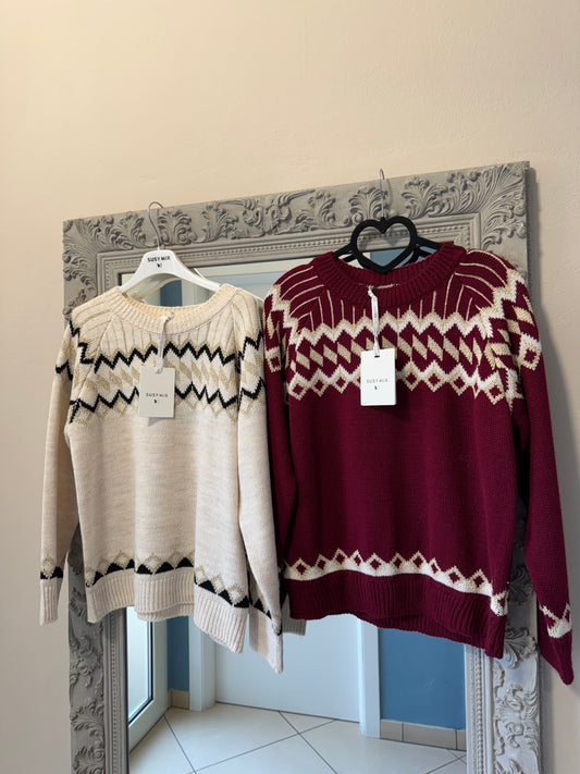 Susymix-Pullover girocollo con rombo color corda