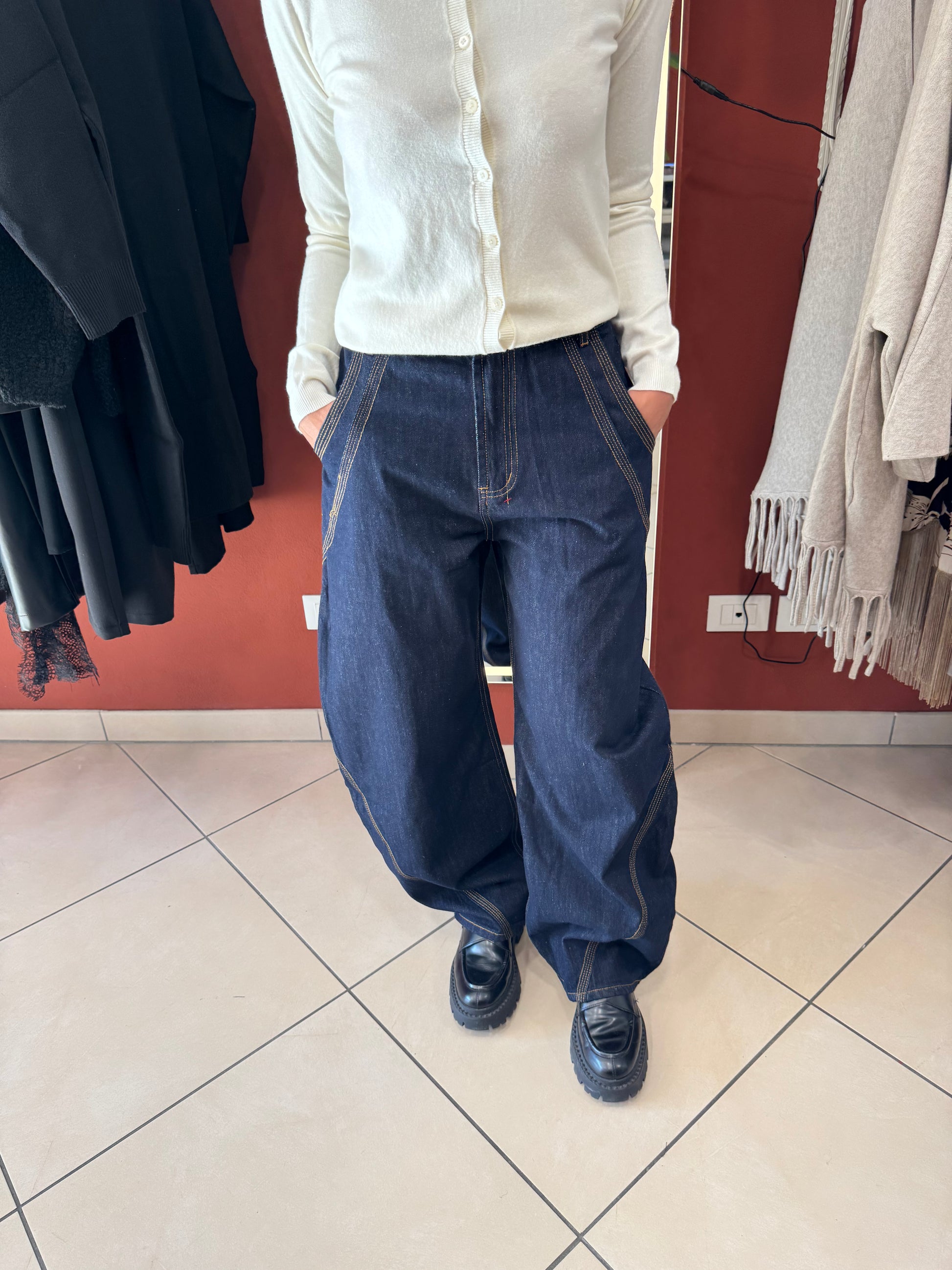 Scopri il nostro denim Barrel dark blue , 100% cotone per uno stile inconfondibile.