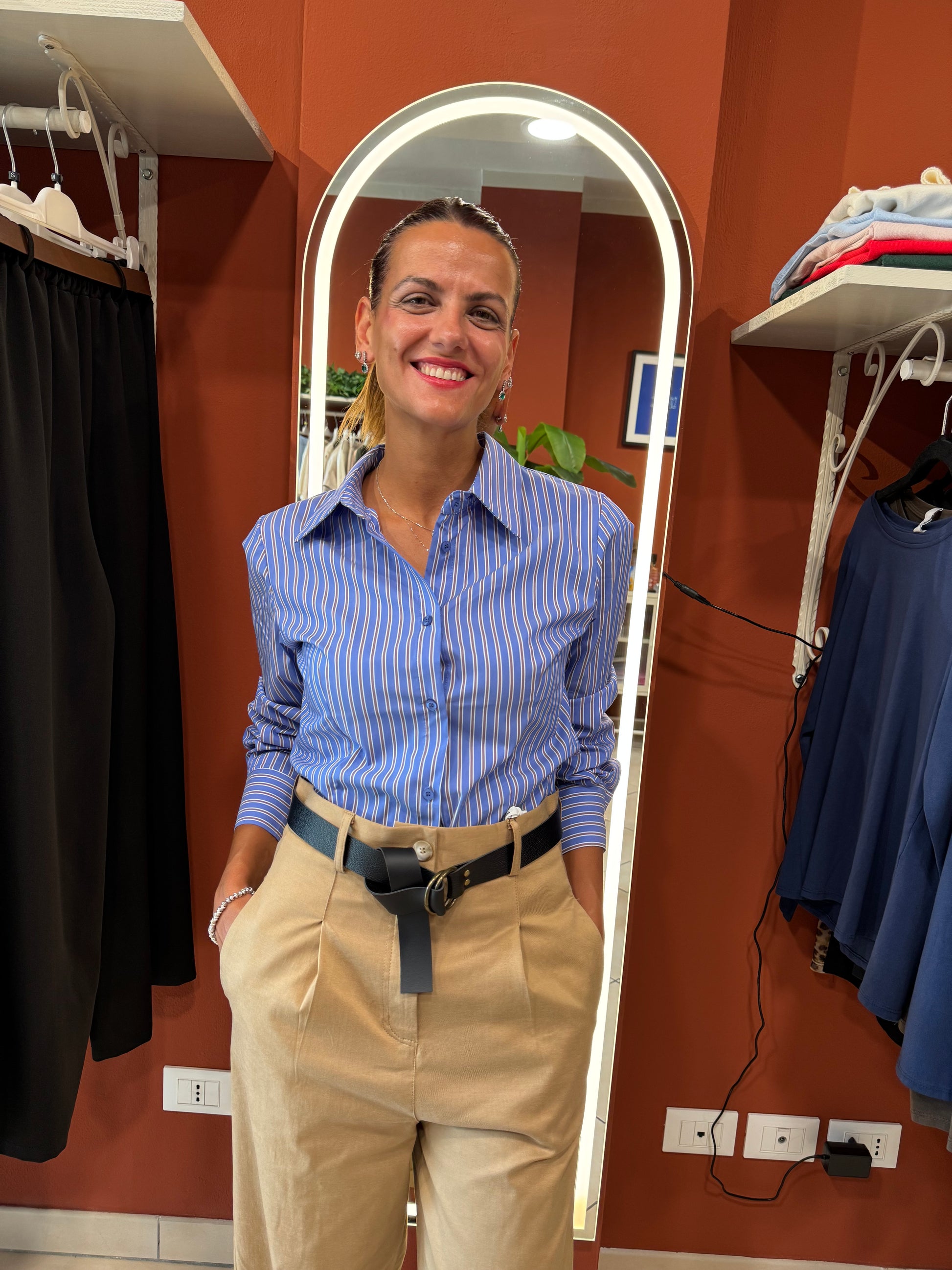Scopri la nostra camicia con taglio slim fit in fantasia gessata , da abbinare ad un pantalone sartoriale o un denim.