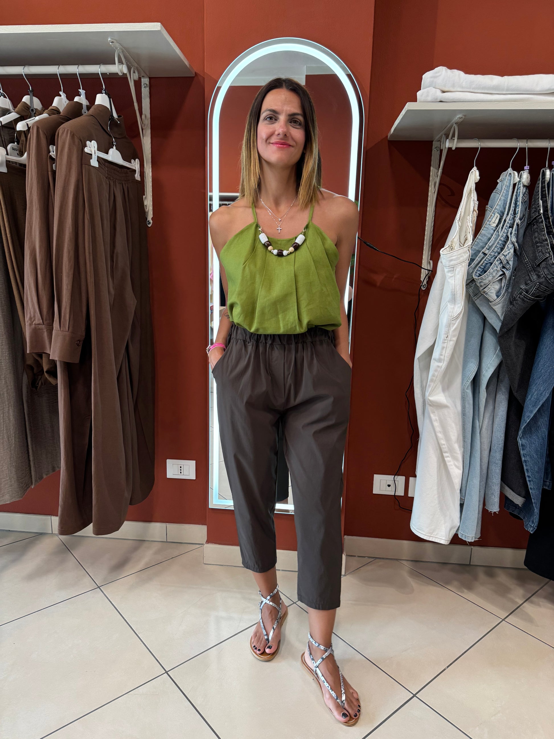 Scopri la nostra canotta scollo america , in tessuto lino e viscosa.