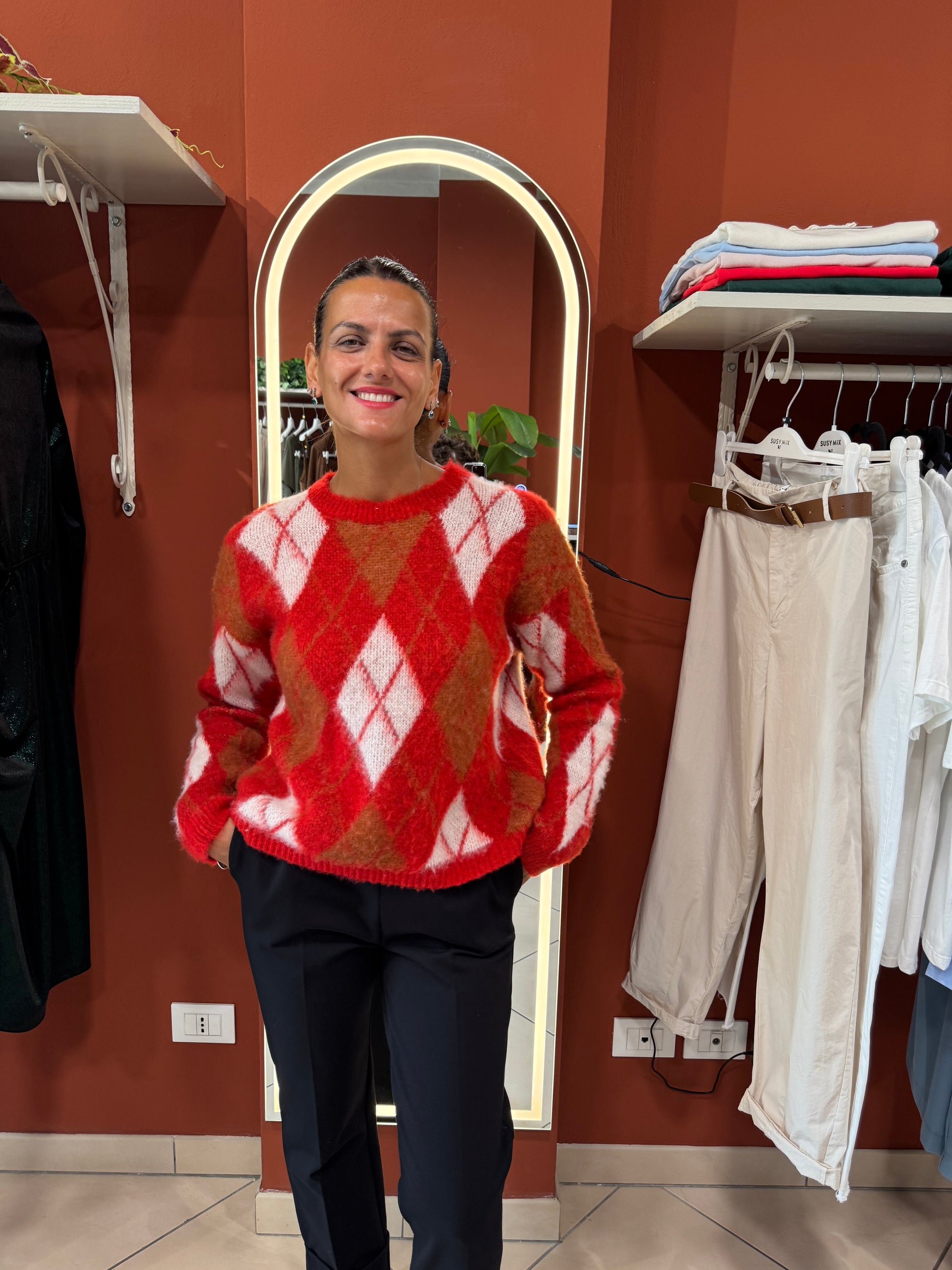 Susymix-Girocollo con rombi in viscosa lanosa