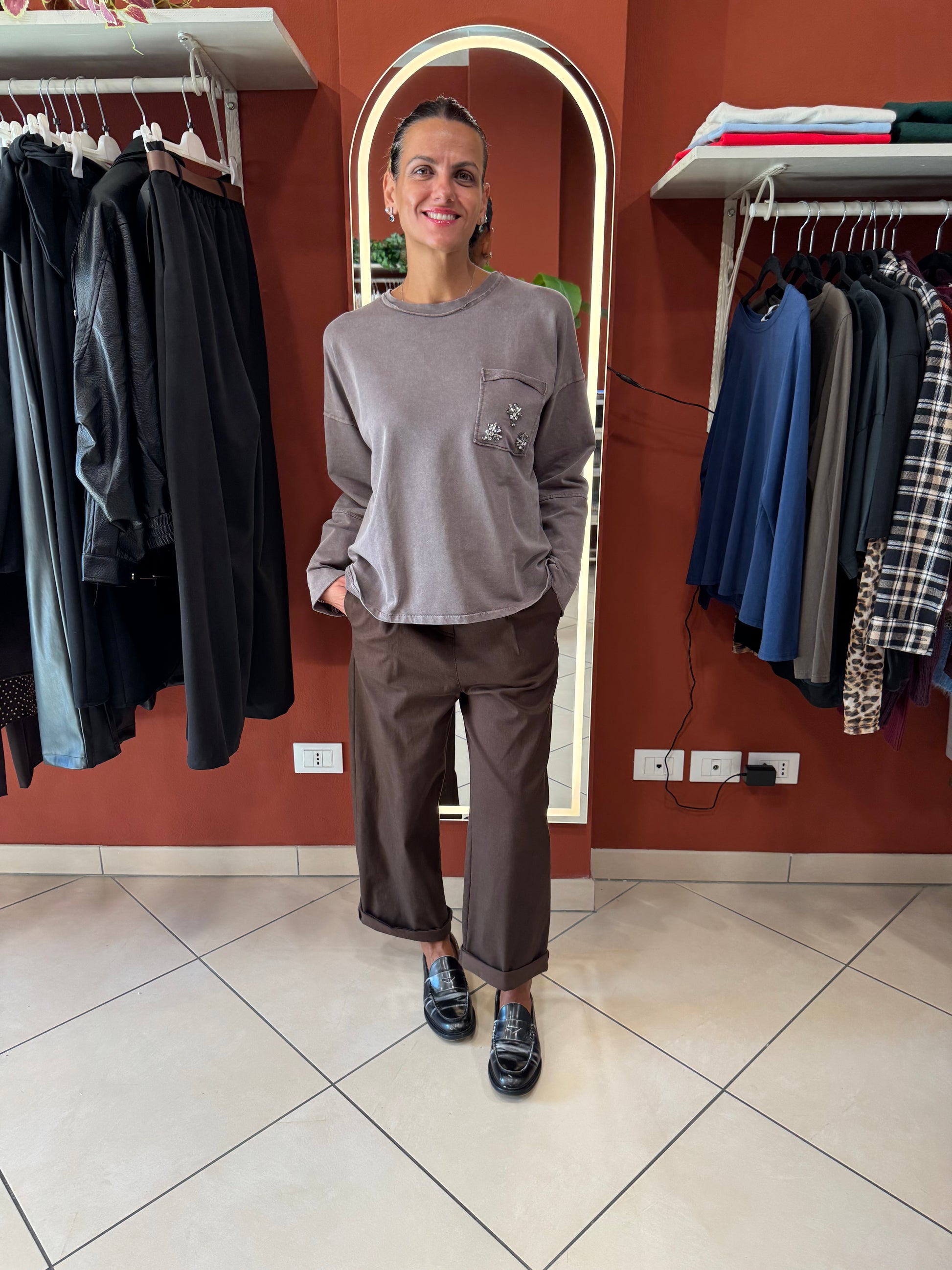 La maglia perfetta per la mezza stagione , da abbinare al pantalone o al denim .