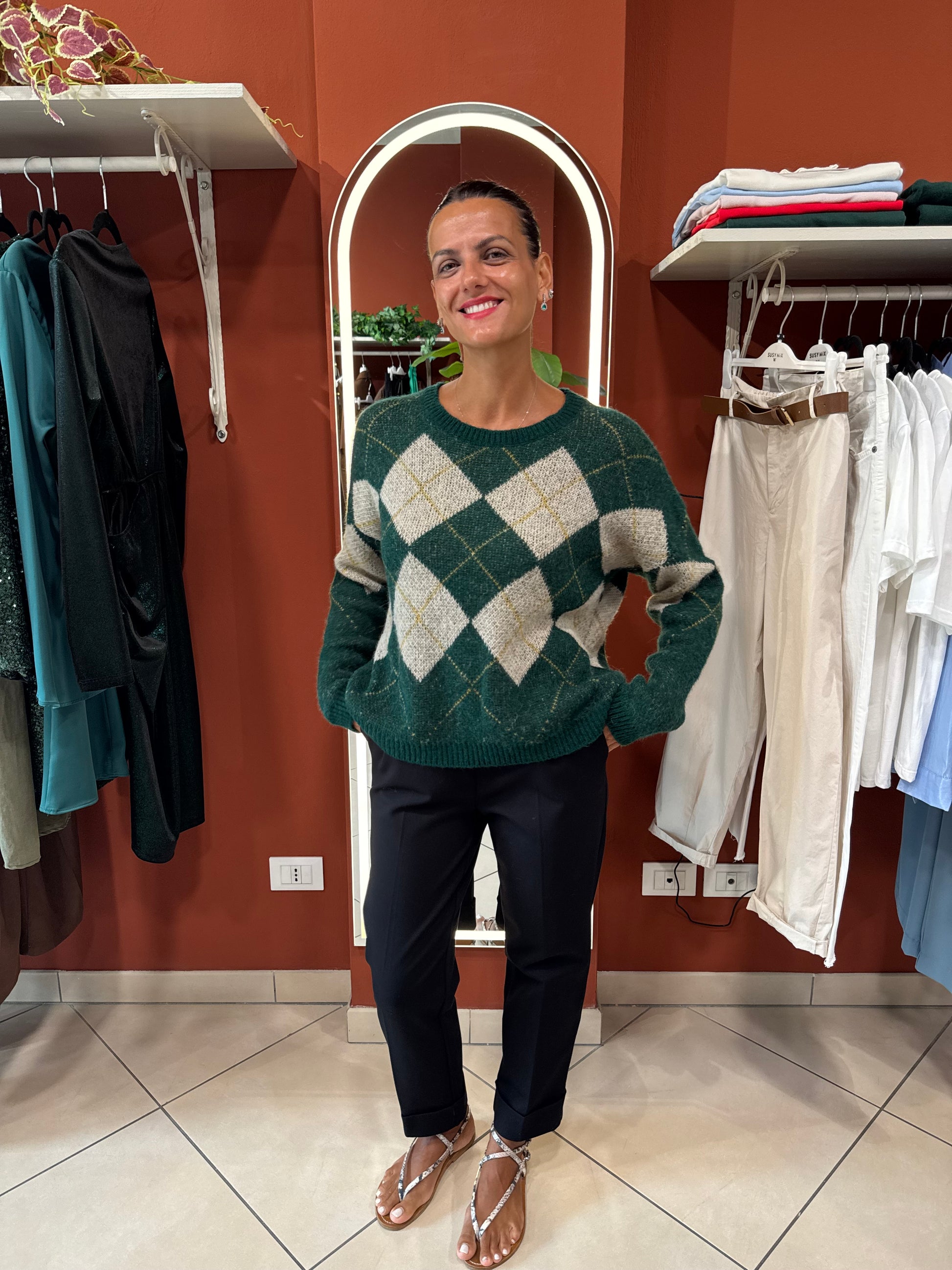 Il nostro girocollo con i rombi, è un pull super versatile.