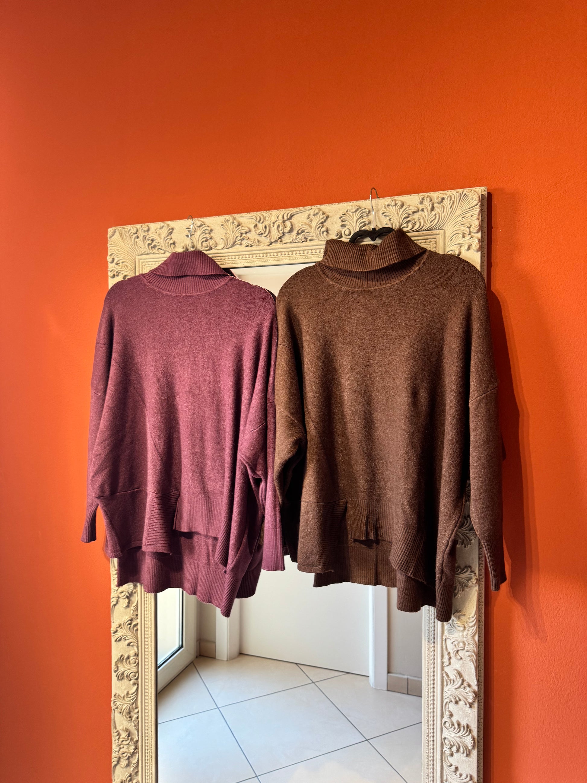 Scopri il nostro dolcevita asimmetrico, in misto viscosa .